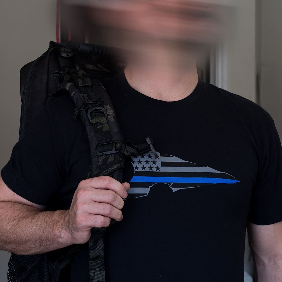 Whether you’re training, on the range, off-duty, or just moving through the day, this shirt is designed for comfort and everyday wear without sacrificing the message behind it. The Thin Blue Line graphic says exactly what it needs to—support, unity, and unwavering respect for the badge and the mission.