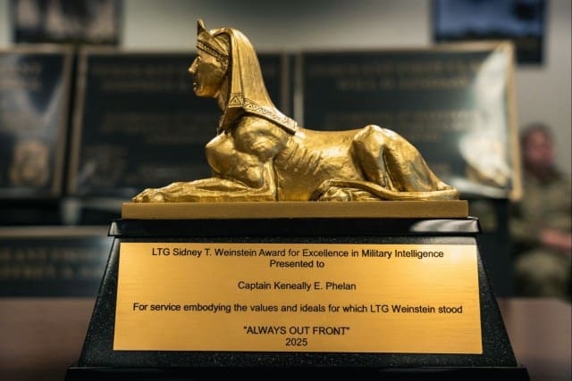 FORT CARSON, Colo. – Capt. Keneally Phelan, Director of Intelligence with 4th Battalion, 10th Special Forces Group (Airborne), was named the 2025 recipient of the Lt. Gen. Sidney T. Weinstein Award for Excellence in Military Intelligence at a ceremony held on Fort Carson, CO, Oct. 30, 2025. She is the first “Original” from the 10th SFG(A) to receive the award, which recognizes exceptional leadership and commitment within the Military Intelligence (MI) Corps.