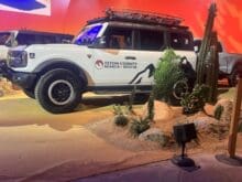Snakestaff Systems exhibited in the booth of their sister company Flux Defense. Their name for their new Violent Incident Stabilization/ Response Panel is quite appropriate as it’s designed to be mounted to a vehicle sun visor.