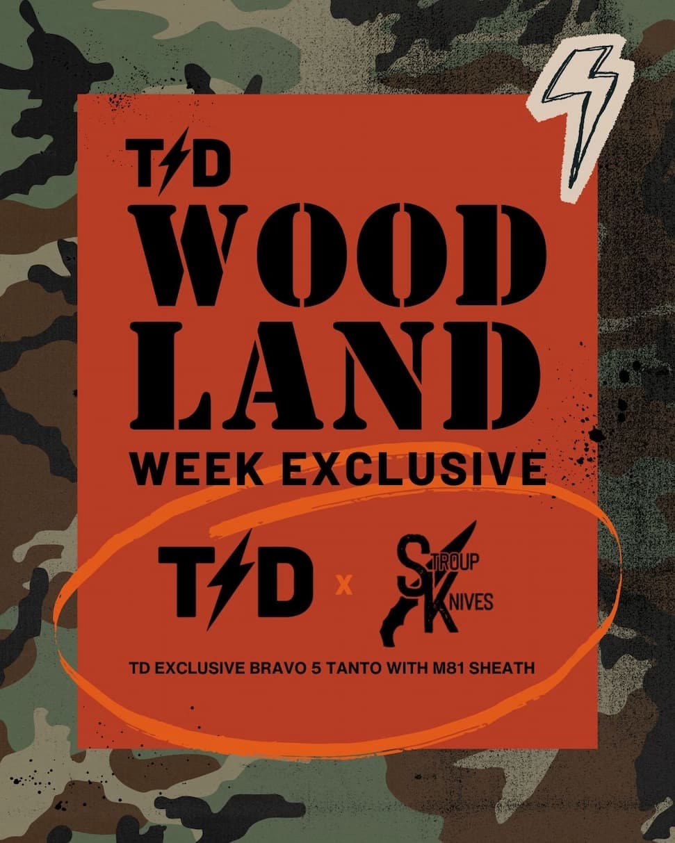 This TD Exclusive hits even harder with a Woodland wrapped sheath you can only get here and a custom Stroup Knives x TD Woodland printed box. Whether you collect or put miles on your gear, this one earns its spot fast.