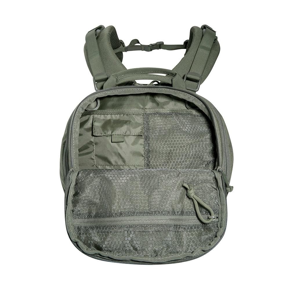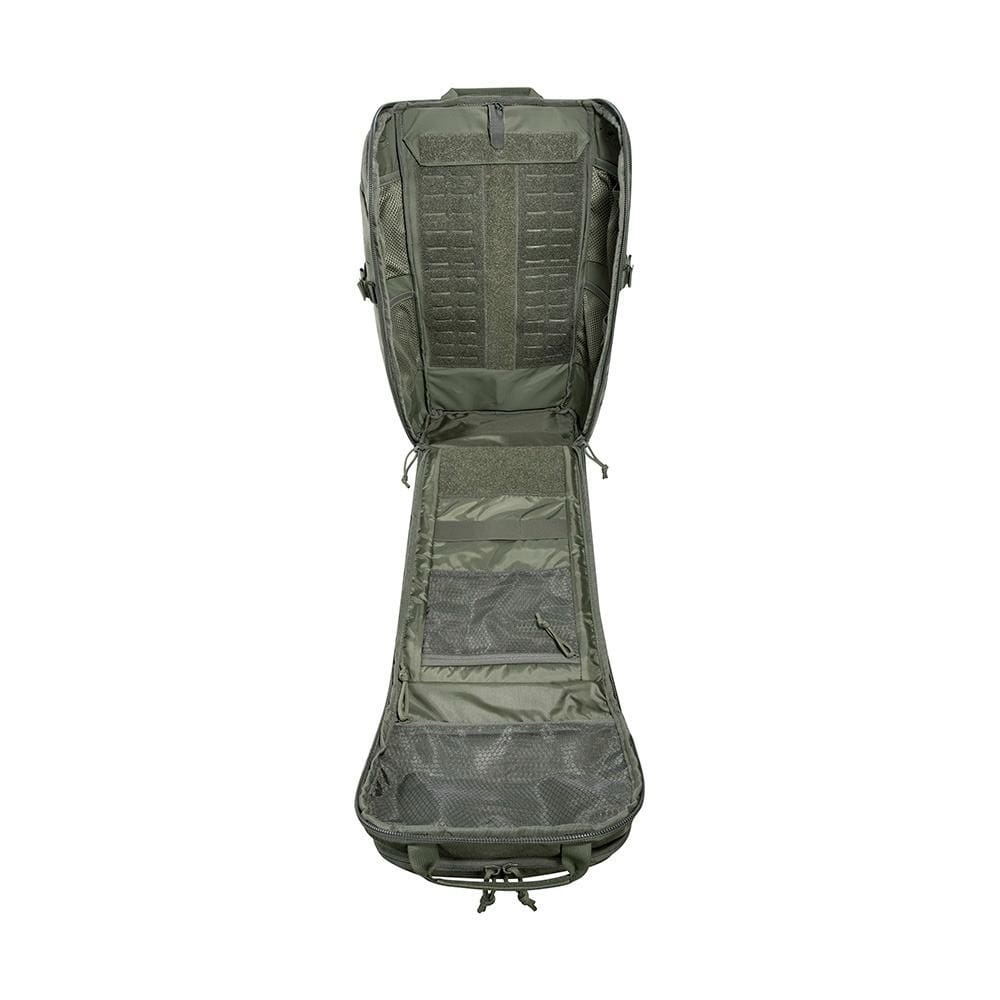 Engineered for modularity, the TT Modular Pack 30 SL features a laser-cut MOLLE system on the front and sides, as well as MOLLE hook-and-loop panels inside the main compartment. This configuration enables extensive customization and expansion with compatible pouches and accessories. The front panel offers four MOLLE loops across by five loops vertically, while the sides provide four loops across by seven loops vertically, with one interruption.